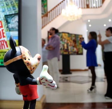 La mirada de Karla de Lara no solo muestra el continuo devenir de imágenes sino que también nos narran la ruta de lo que observa construyendo historias sin fin que en cada irrepetible fragmento desglosa el deseo de lo que podría aparecer en una escena, en un retrato, en un paisaje pictórico. Las series que conforman esta exposición nos dan cuenta de los planos paralelos que son disimiles entre sí, series pictóricas llenas de color para hacernos sentir lo vivaz de las ciudades que habitamos para luego introducirnos a las series en blanco y negro con un fuerte componente melancólico, ahí tenemos lo disímil pero paralelo, vivaz y melancólico. Las esculturas que forman parte de este trayecto nos dan cuenta de la potencia creadora de una mirada que encapsula en lo matérico la cultura pop de nuestra época, planos, simbolismos, imaginarios, vestigios que nos remiten a una época llena de paralelos y contrastes.