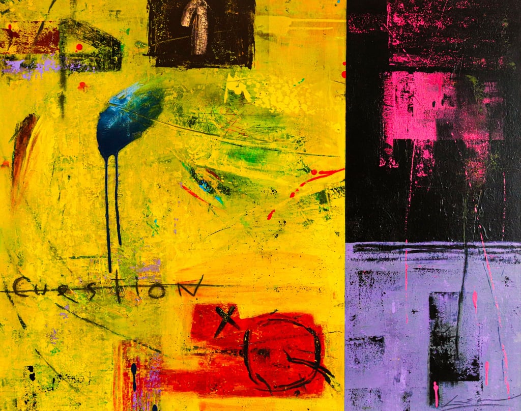 Miró, Klee, Tápies, Penck, Basquiat, Bacon, Warhol, Cuenca….graffitti en dimensiones marcadas por un informalismo nacido en los susurros del dolor: ausencia, nostalgia, mirada a lo que fue, parpadeo que se incrusta en un presente de exilio sensorial. Lazer Fundora sigue en las arenas del Almendares: agua que desemboca en su corazón de muchacho azorado. Influencias que han sido asimiladas en apuntes aleatorios manchados de una dulce ironía: tatuajes en los marrones, en los rojos y en los delicados amarillos.