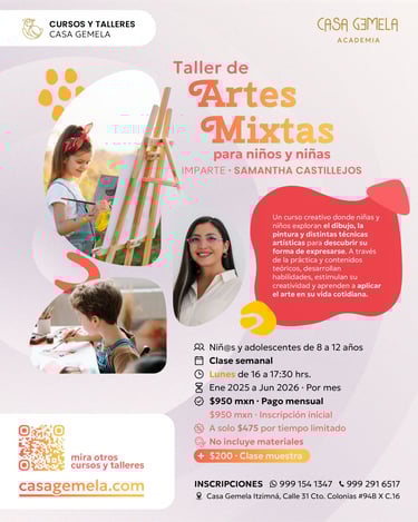 Un curso creativo donde niñas y niños exploran el dibujo, la pintura y distintas técnicas artísticas para descubrir su forma de expresarse.