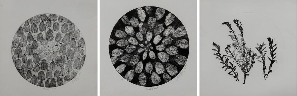 Las placas derivadas de las técnicas tradicionales del grabado, han sido impresas en papel y se muestran las estampas enmarcadas. El conjunto de obra está formado por treinta placas de cobre grabadas de diferentes tamaños desde la más pequeña de 16 cm de diámetro hasta la mayor que tiene 15 plantas diferentes para el baño de enferma, cuatro tornamesas que reproducen el sonido de las placas en vivo, treinta estampas enmarcadas y la composición musical.