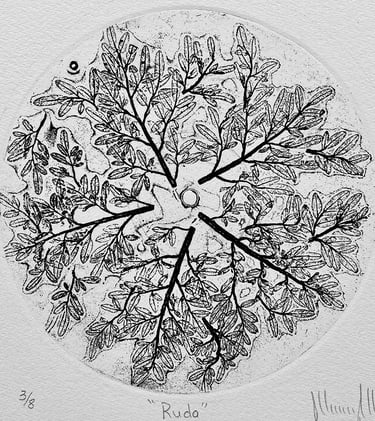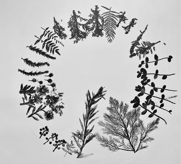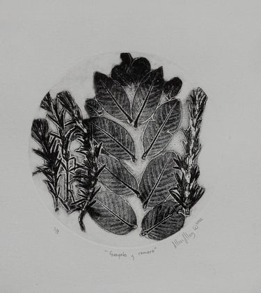 Plantas medicinales como: romero, lavanda, salvia, ruda, hojas de guayaba, zacate limón, son grabadas en 30 placas de cobre en forma de discos para ser colocados en tornamesas que reproducen sonido a partir de las imágenes grabadas, son acompañadas del mismo número de impresiones en papel buscando traducir la imagen en sonido.