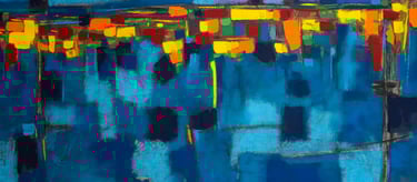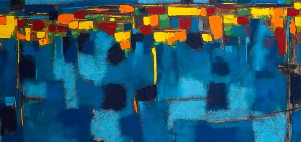 Sus composiciones, de marcada intensidad cromática, remiten a los códices prehispánicos, donde la narración visual se desenvuelve en una estructura no lineal, fragmentada y dinámica. Cada trazo se percibe como vestigio de un relato mítico en constante mutación, mientras las formas emergen y se disuelven en un juego de luces y sombras que sugiere tanto la epifanía como la desaparición.