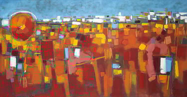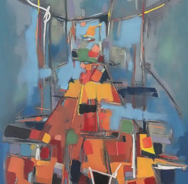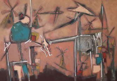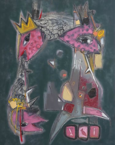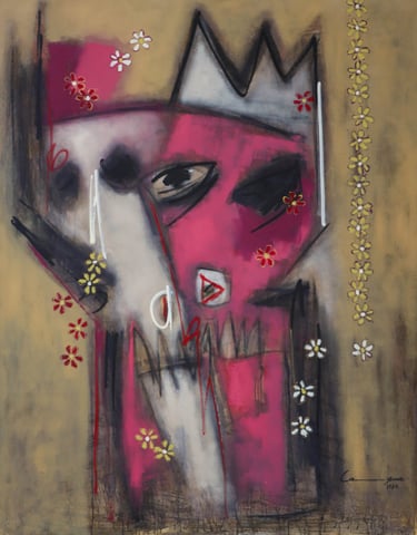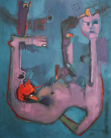 La iconografía de Díaz Carrodeguas no es una mera referencia a la cosmovisión maya, sino es una relectura contemporánea que trasciende el gesto arqueológico. En sus lienzos el Popol Vuh se reinventa a través de una paleta vibrante y una composición que evoca el caos primigenio, donde los dioses modelaban la materia como un aliento divino. Los espíritus de Xibalbá, las deidades del maíz y los gemelos heroicos se transfiguran en formas que fluctúan entre lo figurativo y lo etéreo, como si fueran espectros de un tiempo que nunca deja de latir.