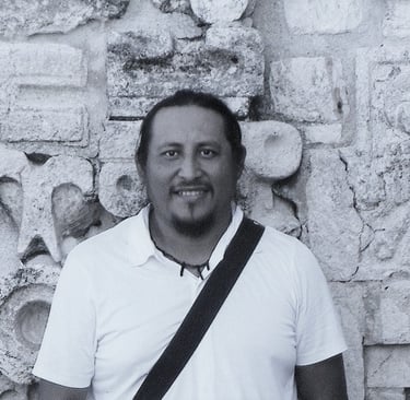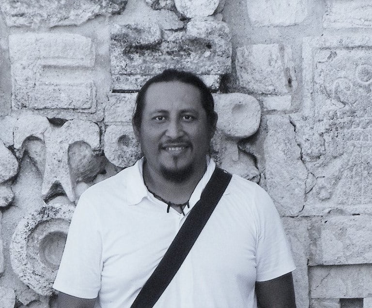 Artista autodidacta originario de Mérida Yucatán, quien en un proceso gradual, comenzó a perfeccionar su propio lenguaje visual, inspirándose en el arte Maya, el arte fantástico y la ciencia ficción de los años ochenta y noventas, enfocándose en el diseño de la figura humana, principalmente la anatomía femenina, empleando técnicas que iban desde el óleo, acrílico, dibujos a tinta china, e integrando inteligentemente elementos de arte conceptual, como piedras talladas, plumas, cuentas de papel hechas a mano, y otros materiales, logrando así texturas, imágenes, y símbolos sutiles, que no se encuentran muy a menudo en pinturas al óleo.